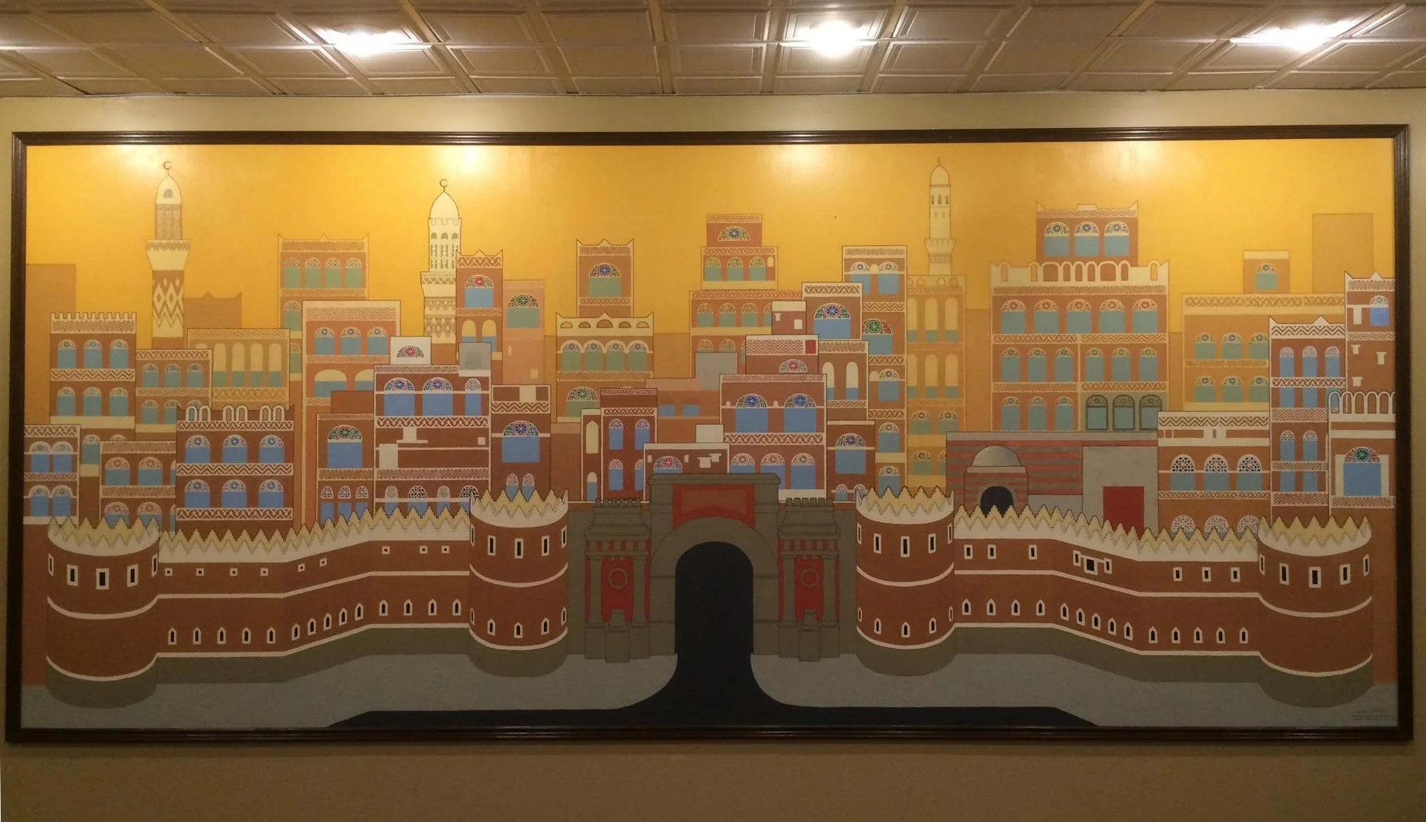 Gate of Yemen (Bab al-Yaman) is a stylized depiction of the main gate of Sana's old fortified wall, exploring the visual rhythms and indigenous aesthetics present in the UNECSO World Heritage Site.